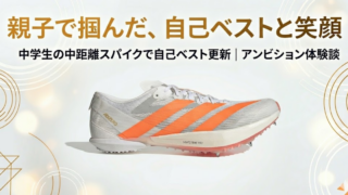 中学生の中距離スパイク選びに悩んでいませんか?娘がアディゼロアンビションに変えたことで自己ベストを更新。軽さ・反発力・ピン配置の違いや、実際に使って分かったメリット・注意点を体験談で詳しく紹介します。
